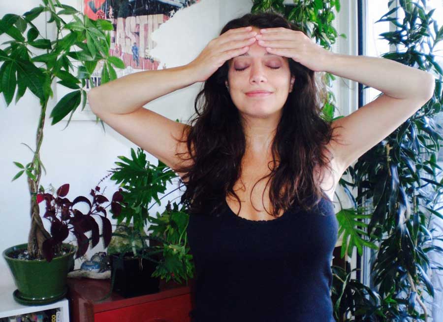 • Gently rub forehead with palms of hand from the third eye out