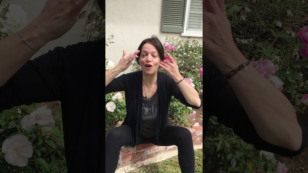 Crown pull. Since your hands are near your forehead, this creates the perfect transition into a crown pull. Start by gently placing your hands on your forehead with your fingers facing each other. Begin to pull the skin toward your temples and upward until you reach your hairline. Then increase the pressure, as if you are digging your fingers into the “part” of your hair (the center line of your head) and pull/drag your fingers apart. Continue this all the way over your head, to the back of your head and ending on your neck. This is great for clearing mental congestion and opens the crown chakra, opening you to creative inspiration and universal information. Try this exercise if you are feeling negative or if you have a headache.